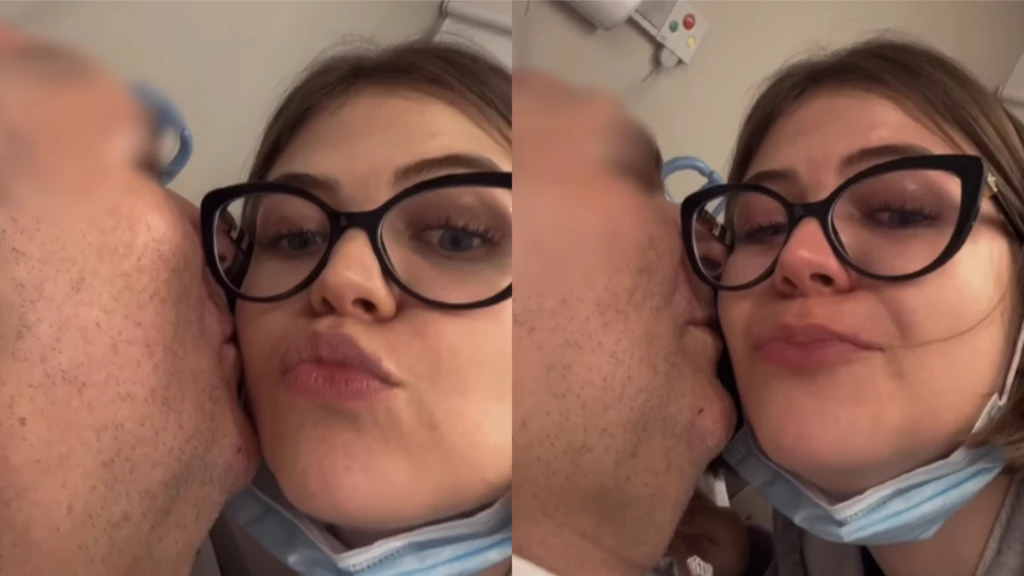 No vídeo, a jovem coloca o rosto próximo ao pai e pede um beijo. Mingau, então, faz o movimento de beijá-la.