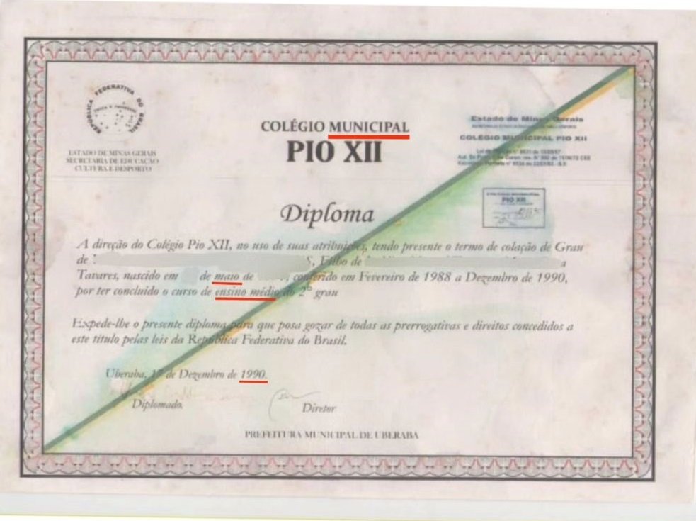 Segundo a investigação, ele cursou apenas até a quarta série, e teria adquirido o diploma falso em