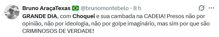 O uso da expressão nas redes sociais se espalhou rapidamente entre os termos mais comentados na rede X, impulsionado especialmente por usuários que comemoravam a prisão de Oliveira. Nas publicações, os internautas lembraram do apoio do influenciador ao presidente Luiz Inácio Lula da Silva (PT).